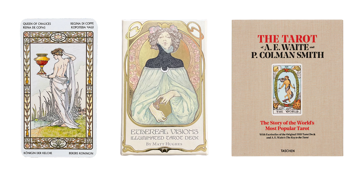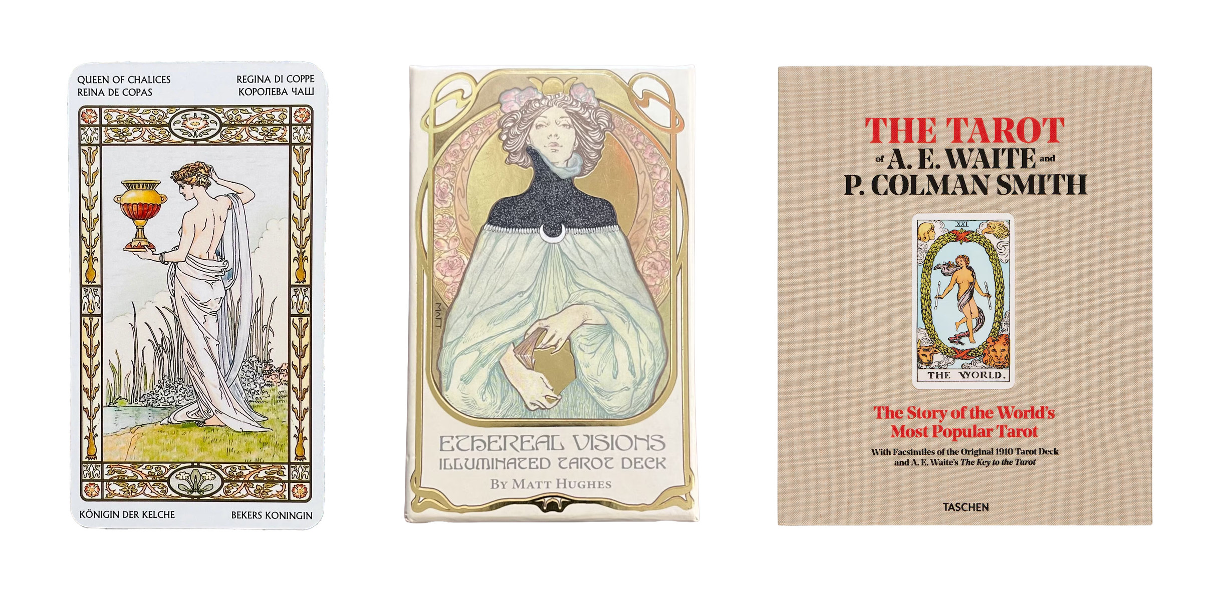 Tarot Decks: These skew towards the occult and “witchy” and their are some tarot readers that believe a deck must be given to you before you can even start learning. You can make practicing as simple or complicated as you like — some people I know just pull a card a day, others are more advanced. But there are decks out there for almost every interest just add tarot to the end of it and google. (The Rider Waite deck, on the right, is the original.)
