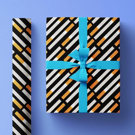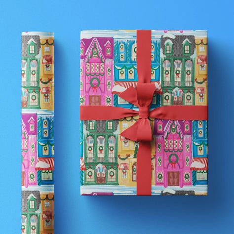But, before we get to the gifts, a friendly reminder that in my spare time, I design and sell wrapping paper. There are tons of new hand drawn patterns for Christmas, Hanukkah and more. (Also note, this may get cut off in your email, but just hit the read more at the end for the full thing or click here.)